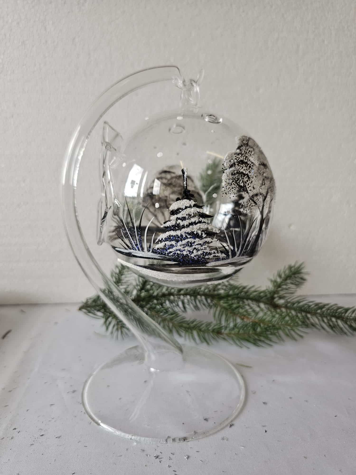 Lampa 12 cm včetně stojánku – černá krajinka