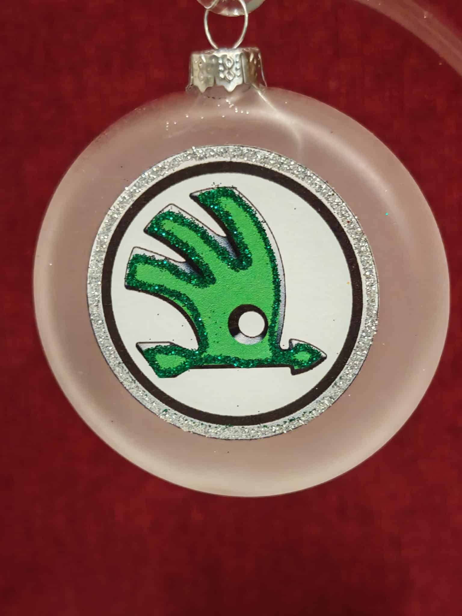 Skleněný medailon 8 cm – znak Škoda 1
