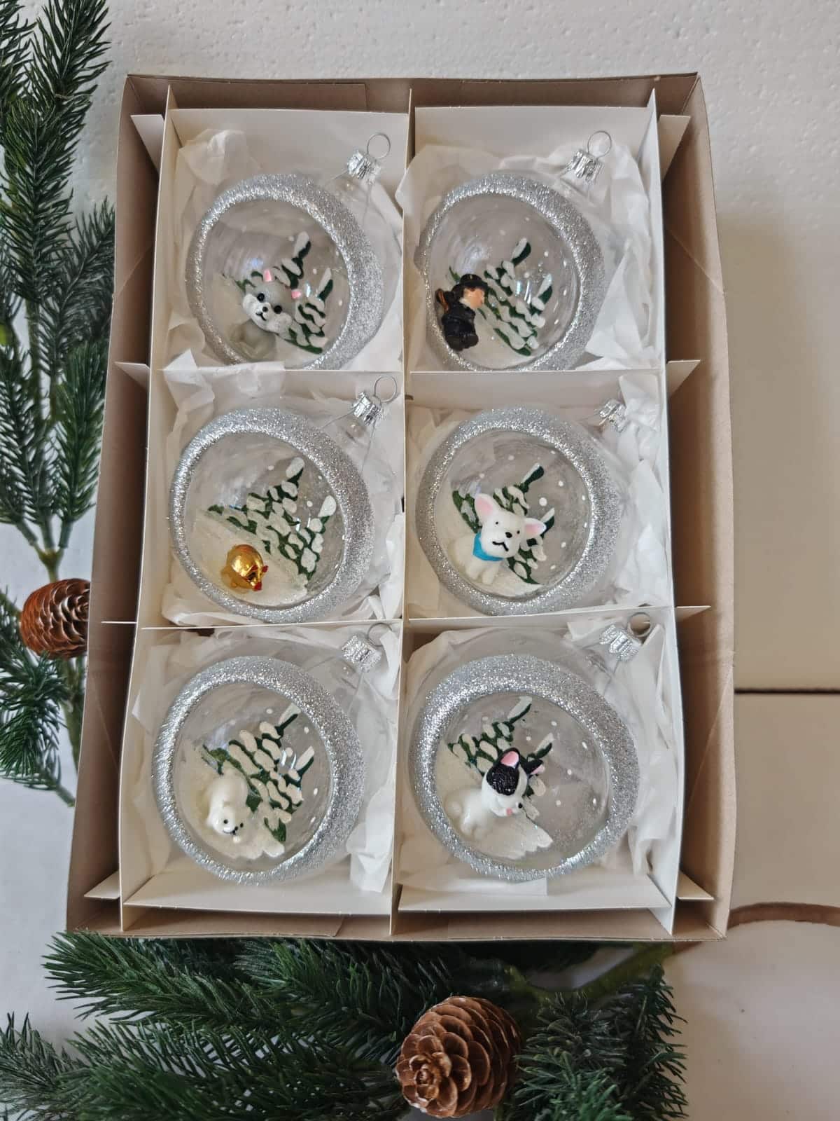 Sada 6 retro koulí s figurkou průměr 8 cm čiré
